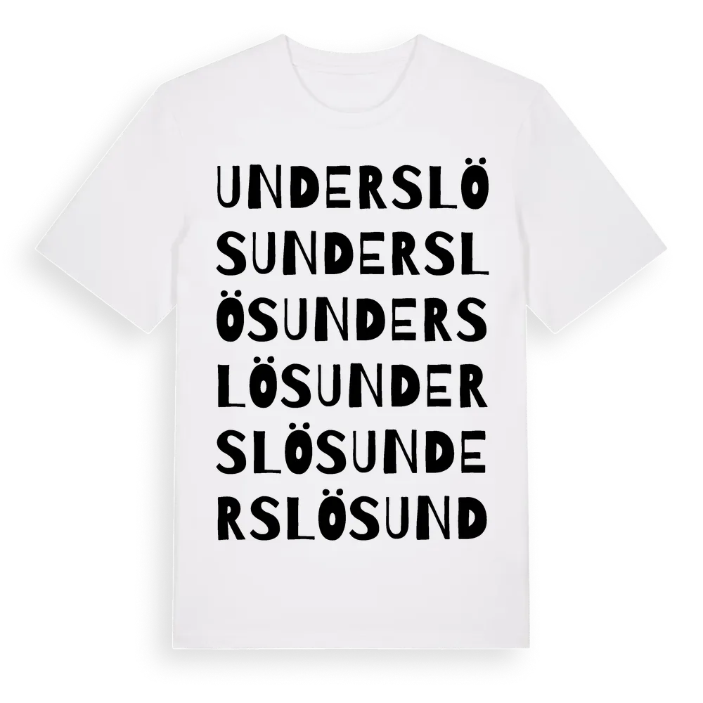 Underslös ordlek t-shirt är inspirerad av Underslös i Västra Götalands län, Sverige. Tröjan är designad för dig som har en speciell koppling till platsen – oavsett om du bor här, har rötterna här eller bara älskar Underslös.