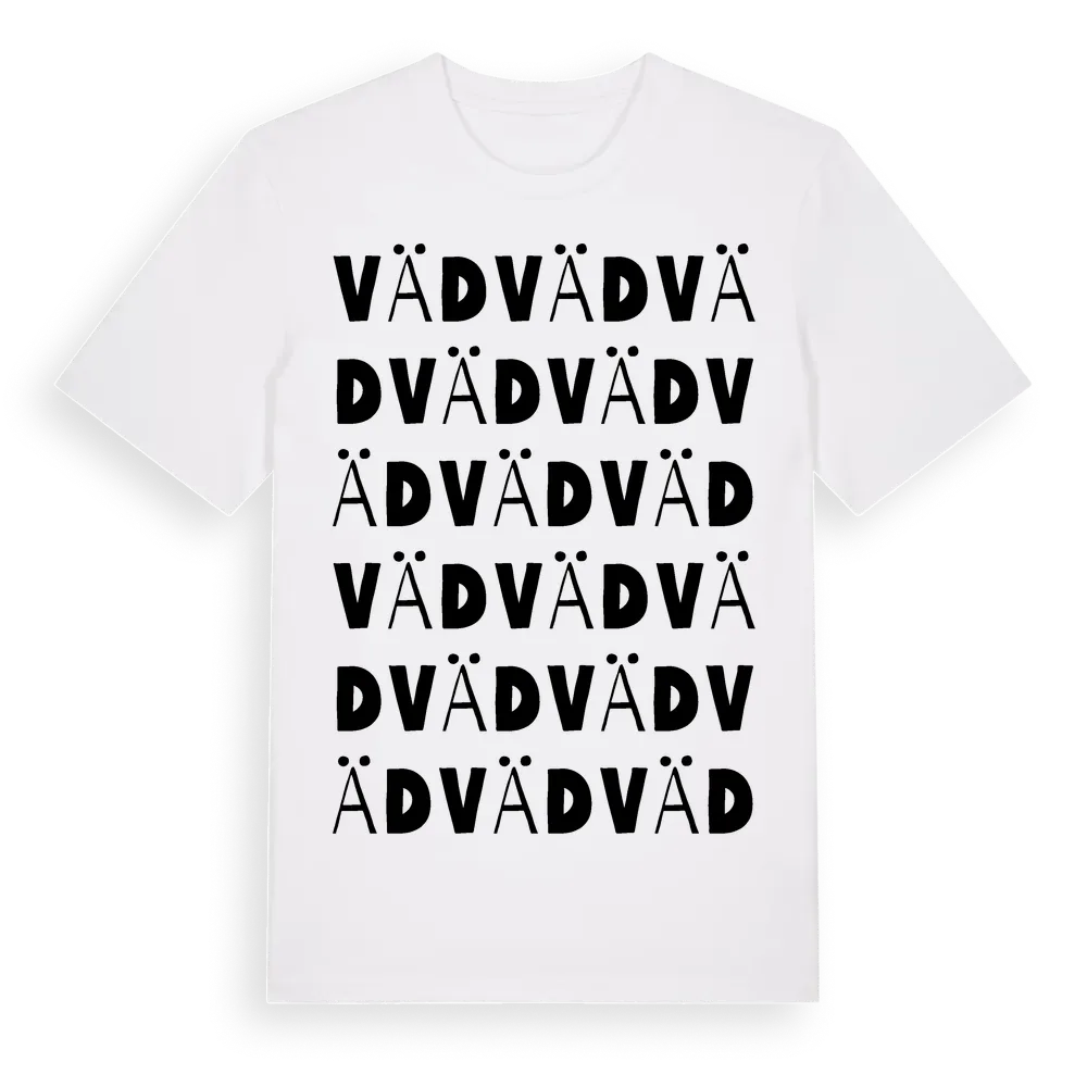 Väd ordlek t-shirt är inspirerad av Väd i Västra Götalands län, Sverige. Tröjan är designad för dig som har en speciell koppling till platsen – oavsett om du bor här, har rötterna här eller bara älskar Väd.