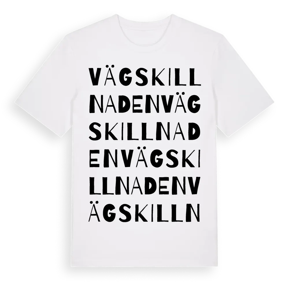 Vägskillnaden ordlek t-shirt är inspirerad av byn Vägskillnaden i Västra Götalands län, Sverige. Tröjan är designad för dig som har en speciell koppling till platsen – oavsett om du bor här, har rötterna här eller bara älskar Vägskillnaden.