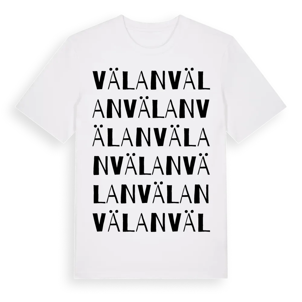 Välan ordlek t-shirt är inspirerad av Välan i Västra Götalands län, Sverige. Tröjan är designad för dig som har en speciell koppling till platsen – oavsett om du bor här, har rötterna här eller bara älskar Välan.