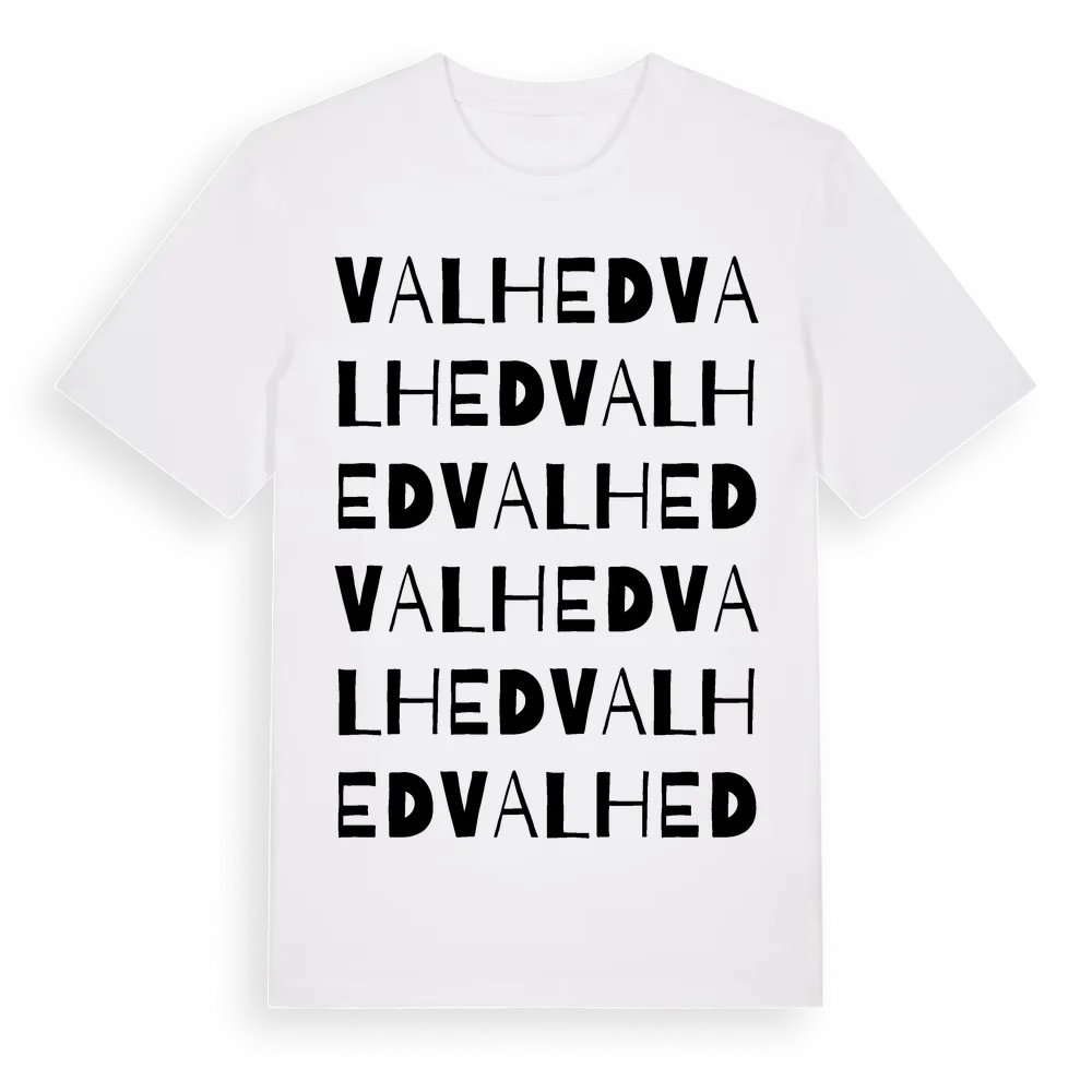 Valhed ordlek t-shirt är inspirerad av Valhed i Västra Götalands län, Sverige. Tröjan är designad för dig som har en speciell koppling till platsen – oavsett om du bor här, har rötterna här eller bara älskar Valhed.