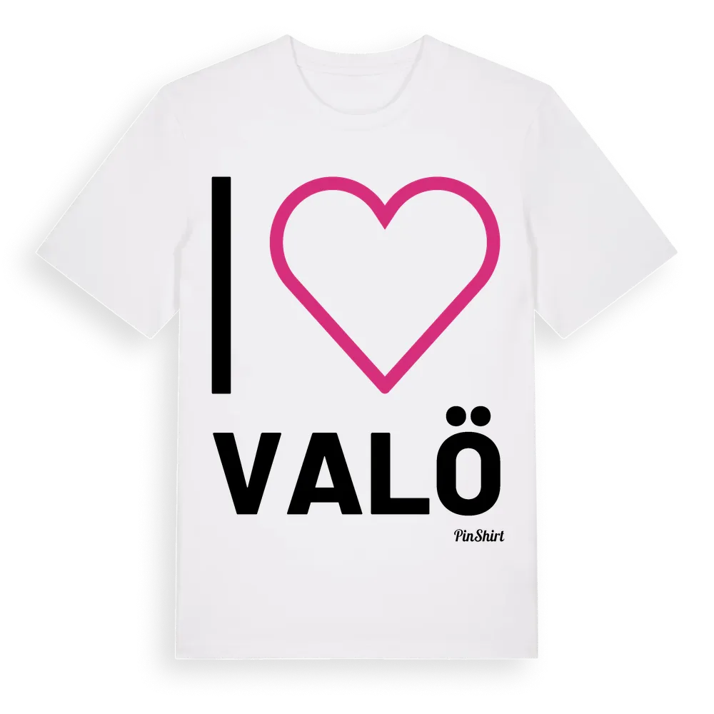 Det klassiska "I ❤ Valö"-motivet i stort format som täcker hela bröstet. För dig som vill visa kärleken till Valö på riktigt. Premium bomull, unisex – från ön Valö i Västra Götalands län.