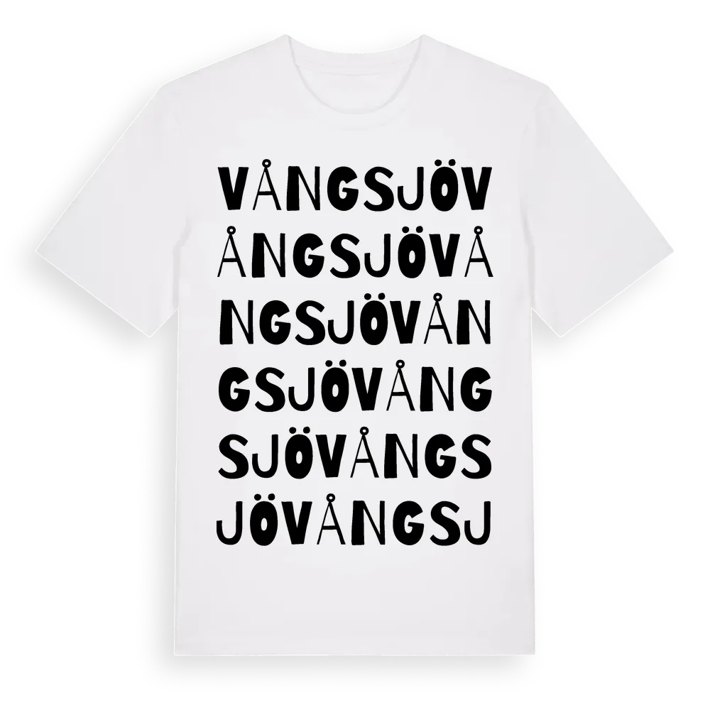 Vångsjö ordlek t-shirt är inspirerad av Vångsjö i Västra Götalands län, Sverige. Tröjan är designad för dig som har en speciell koppling till platsen – oavsett om du bor här, har rötterna här eller bara älskar Vångsjö.