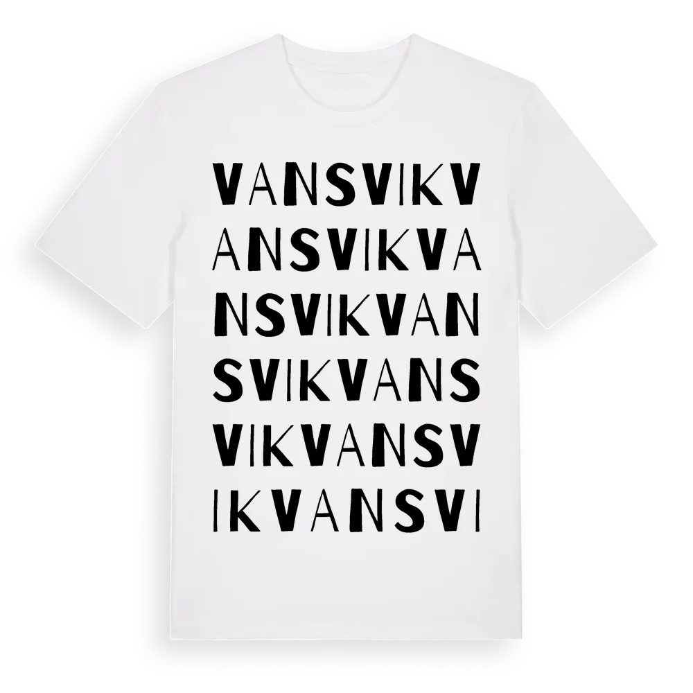 Vansvik ordlek t-shirt är inspirerad av Vansvik i Västra Götalands län, Sverige. Tröjan är designad för dig som har en speciell koppling till platsen – oavsett om du bor här, har rötterna här eller bara älskar Vansvik.
