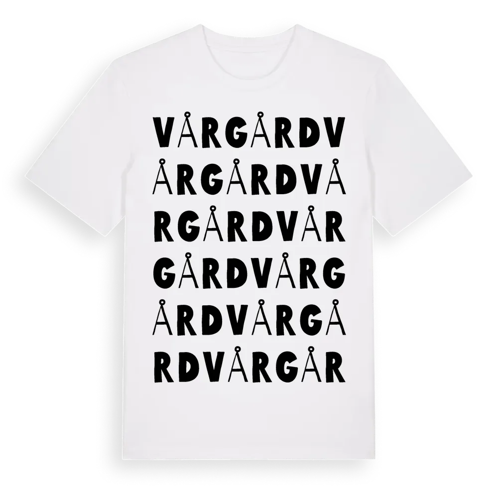 Vårgård ordlek t-shirt är inspirerad av Vårgård i Västra Götalands län, Sverige. Tröjan är designad för dig som har en speciell koppling till platsen – oavsett om du bor här, har rötterna här eller bara älskar Vårgård.
