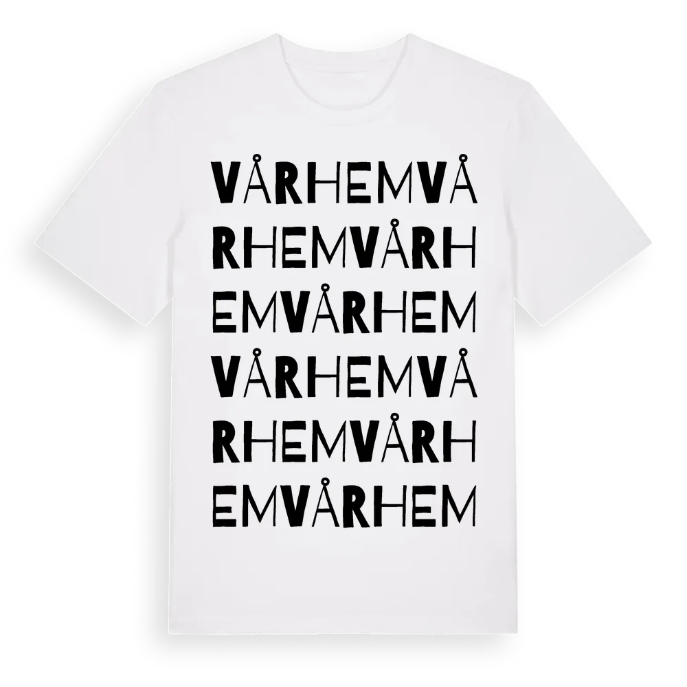 Vårhem ordlek t-shirt är inspirerad av Vårhem i Västra Götalands län, Sverige. Tröjan är designad för dig som har en speciell koppling till platsen – oavsett om du bor här, har rötterna här eller bara älskar Vårhem.