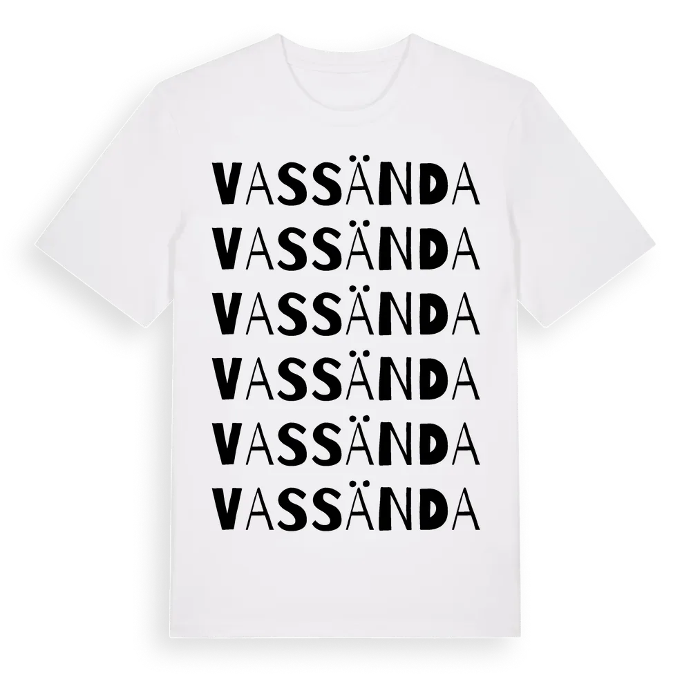 Vassända ordlek t-shirt är inspirerad av byn Vassända i Västra Götalands län, Sverige. Tröjan är designad för dig som har en speciell koppling till platsen – oavsett om du bor här, har rötterna här eller bara älskar Vassända.