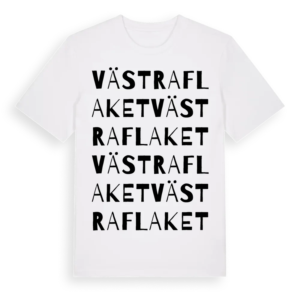 Västra Flaket ordlek t-shirt är inspirerad av Västra Flaket i Västra Götalands län, Sverige. Tröjan är designad för dig som har en speciell koppling till platsen – oavsett om du bor här, har rötterna här eller bara älskar Västra Flaket.