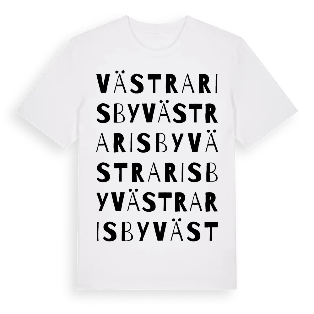 Västra Risby ordlek t-shirt är inspirerad av byn Västra Risby i Västra Götalands län, Sverige. Tröjan är designad för dig som har en speciell koppling till platsen – oavsett om du bor här, har rötterna här eller bara älskar Västra Risby.