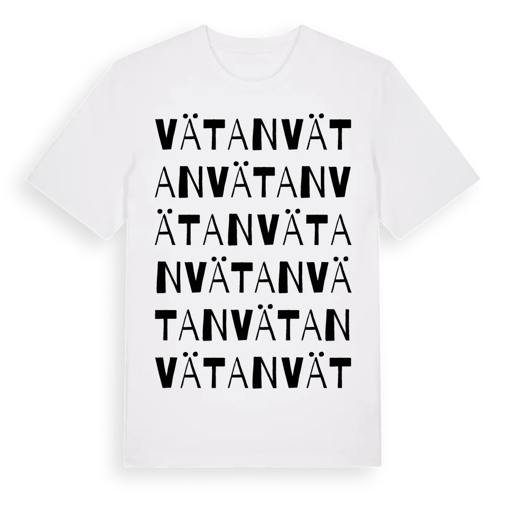 Vätan ordlek t-shirt är inspirerad av byn Vätan i Västra Götalands län, Sverige. Tröjan är designad för dig som har en speciell koppling till platsen – oavsett om du bor här, har rötterna här eller bara älskar Vätan.