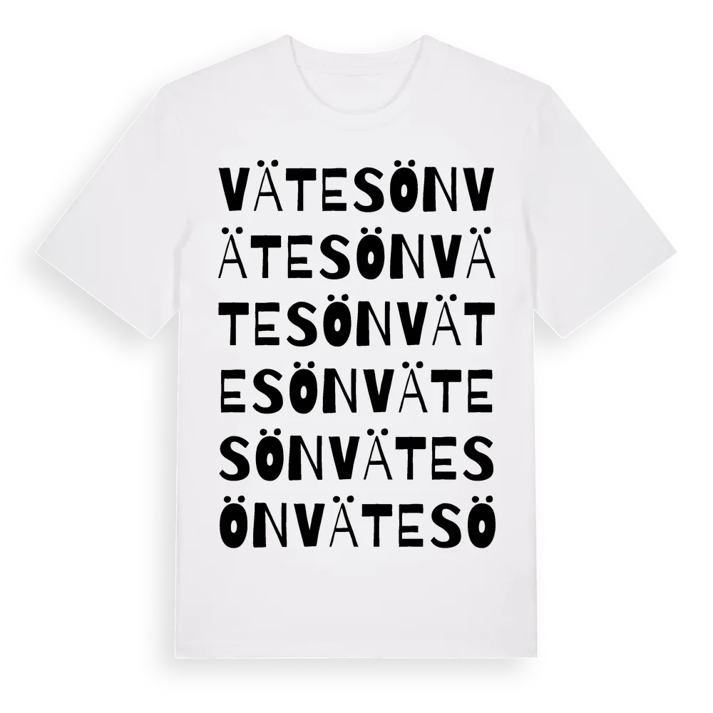 En ordlek byggd på Vätesöns namn. Subtilt och klurig – ett motiv som bara de som verkligen känner platsen fullt ut förstår. Premium bomull, unisex – från Vätesön i Västra Götalands län.