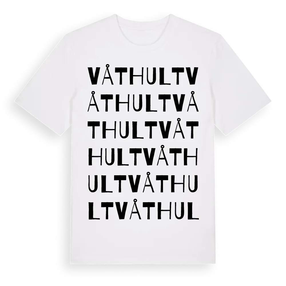 Våthult ordlek t-shirt är inspirerad av Våthult i Västra Götalands län, Sverige. Tröjan är designad för dig som har en speciell koppling till platsen – oavsett om du bor här, har rötterna här eller bara älskar Våthult.
