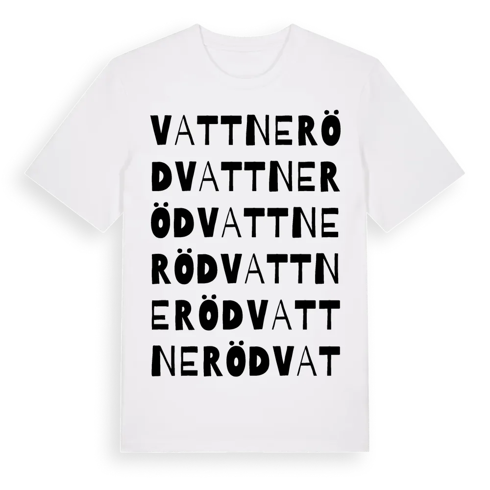 Vattneröd ordlek t-shirt är inspirerad av Vattneröd i Västra Götalands län, Sverige. Tröjan är designad för dig som har en speciell koppling till platsen – oavsett om du bor här, har rötterna här eller bara älskar Vattneröd.