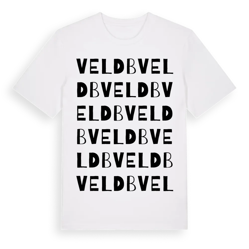 Veld B ordlek t-shirt är inspirerad av Veld B i Västra Götalands län, Sverige. Tröjan är designad för dig som har en speciell koppling till platsen – oavsett om du bor här, har rötterna här eller bara älskar Veld B.