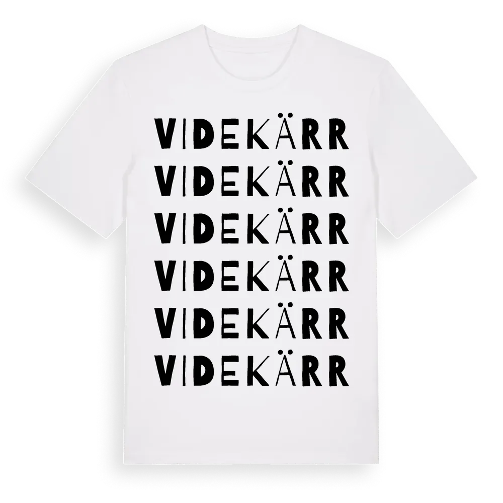 Videkärr ordlek t-shirt är inspirerad av Videkärr i Västra Götalands län, Sverige. Tröjan är designad för dig som har en speciell koppling till platsen – oavsett om du bor här, har rötterna här eller bara älskar Videkärr.