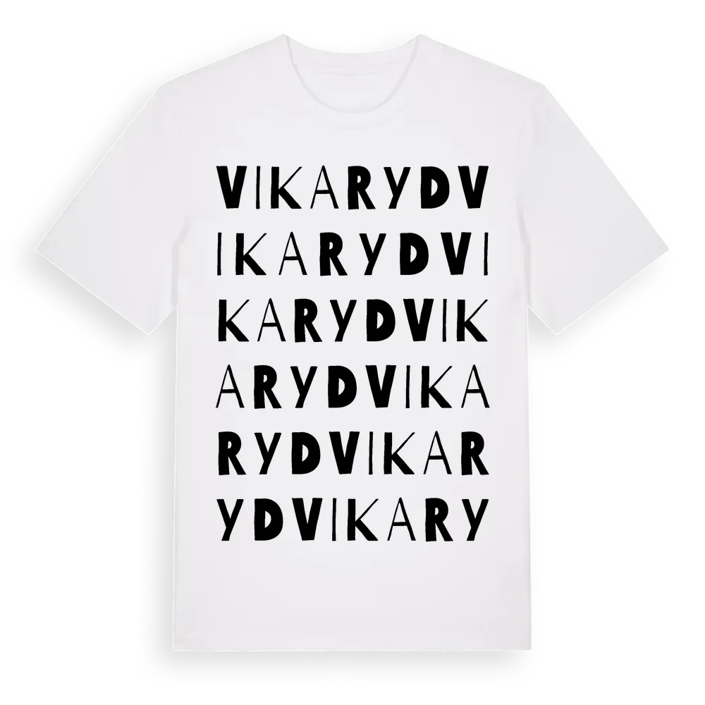 Vikaryd ordlek t-shirt är inspirerad av Vikaryd i Västra Götalands län, Sverige. Tröjan är designad för dig som har en speciell koppling till platsen – oavsett om du bor här, har rötterna här eller bara älskar Vikaryd.