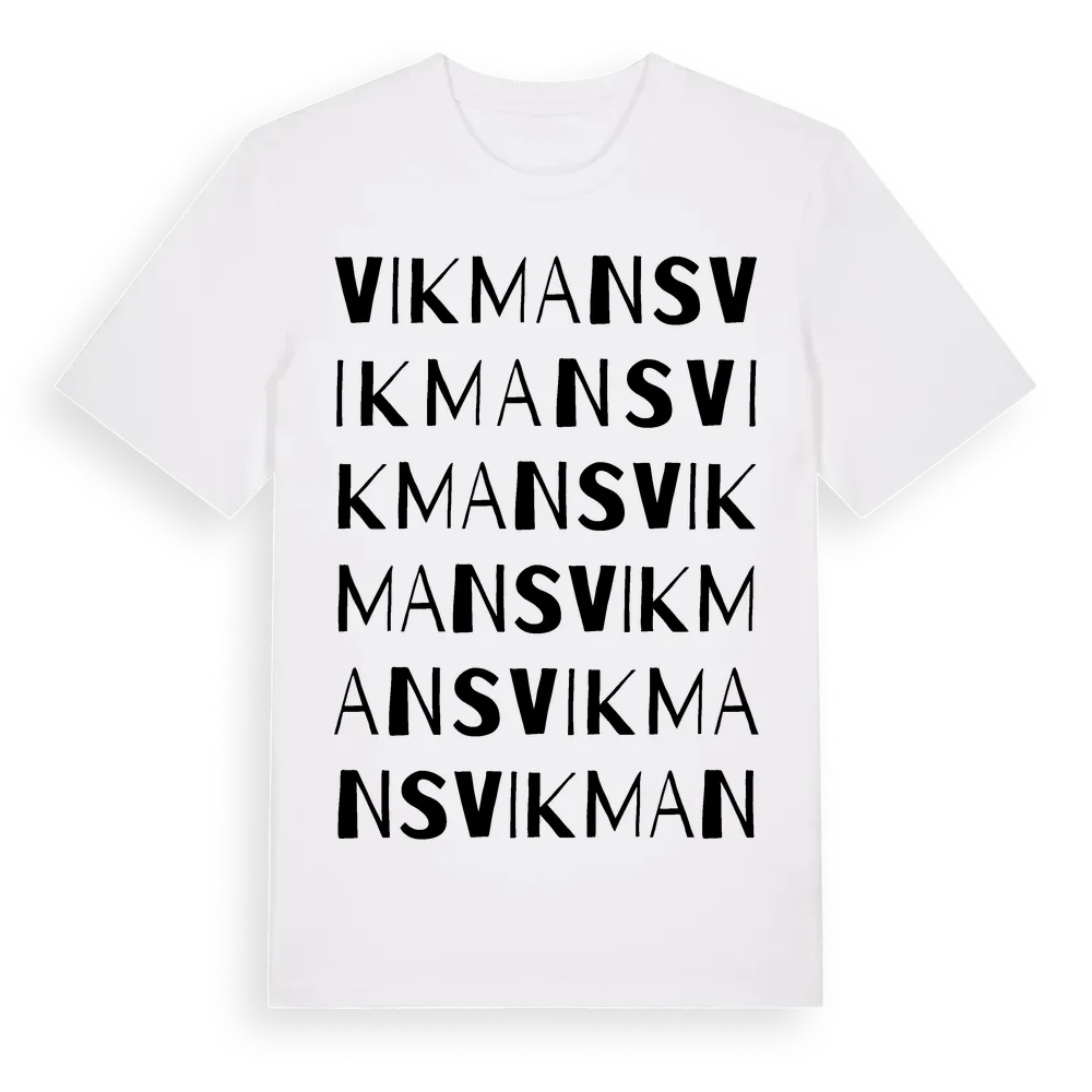 Vikmans ordlek t-shirt är inspirerad av Vikmans i Västra Götalands län, Sverige. Tröjan är designad för dig som har en speciell koppling till platsen – oavsett om du bor här, har rötterna här eller bara älskar Vikmans.