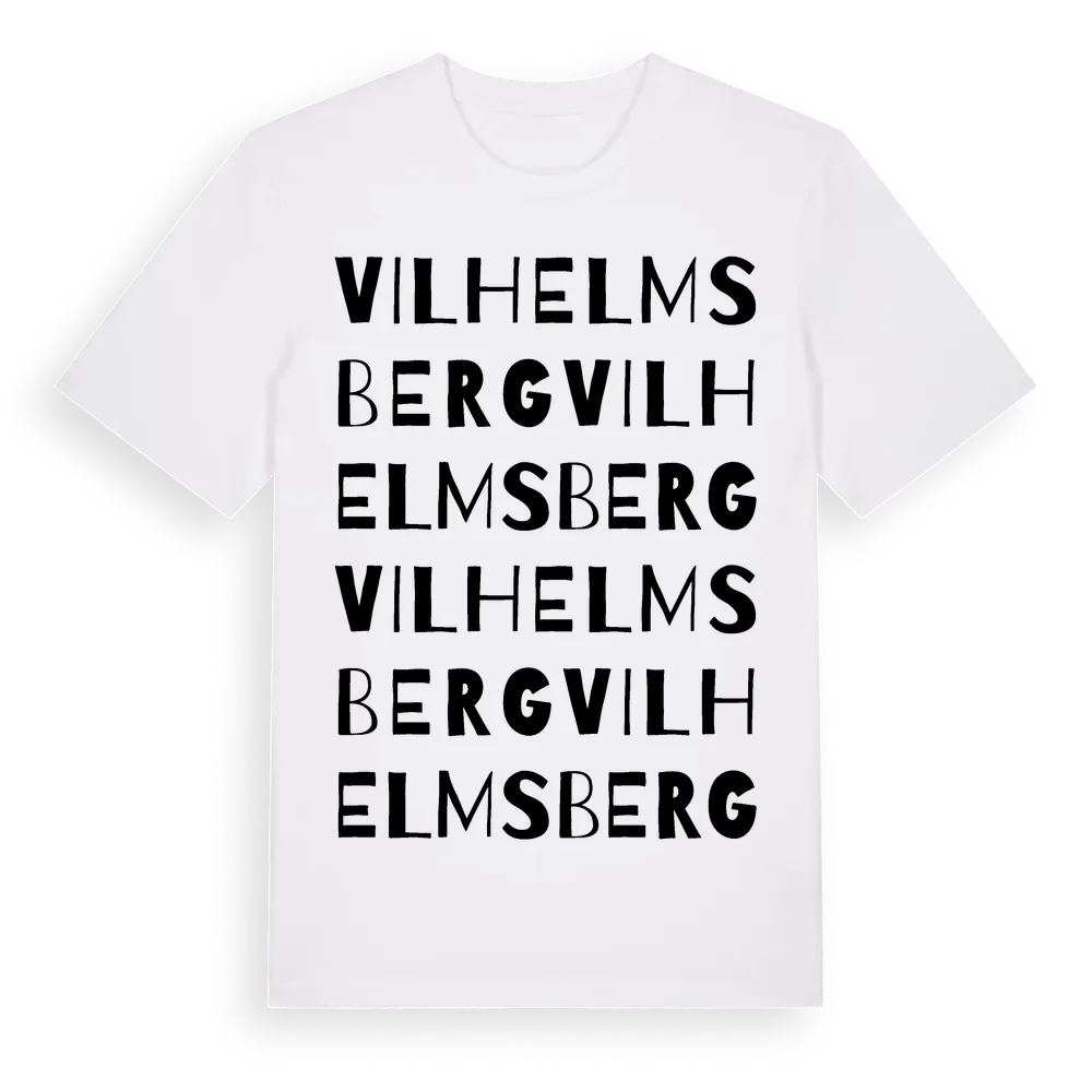 Vilhelmsberg ordlek t-shirt är inspirerad av Vilhelmsberg i Västra Götalands län, Sverige. Tröjan är designad för dig som har en speciell koppling till platsen – oavsett om du bor här, har rötterna här eller bara älskar Vilhelmsberg.