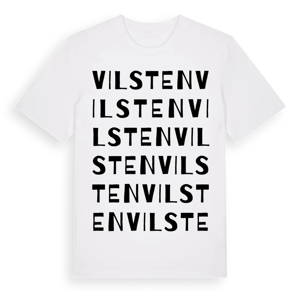 Vilsten ordlek t-shirt är inspirerad av Vilsten i Västra Götalands län, Sverige. Tröjan är designad för dig som har en speciell koppling till platsen – oavsett om du bor här, har rötterna här eller bara älskar Vilsten.