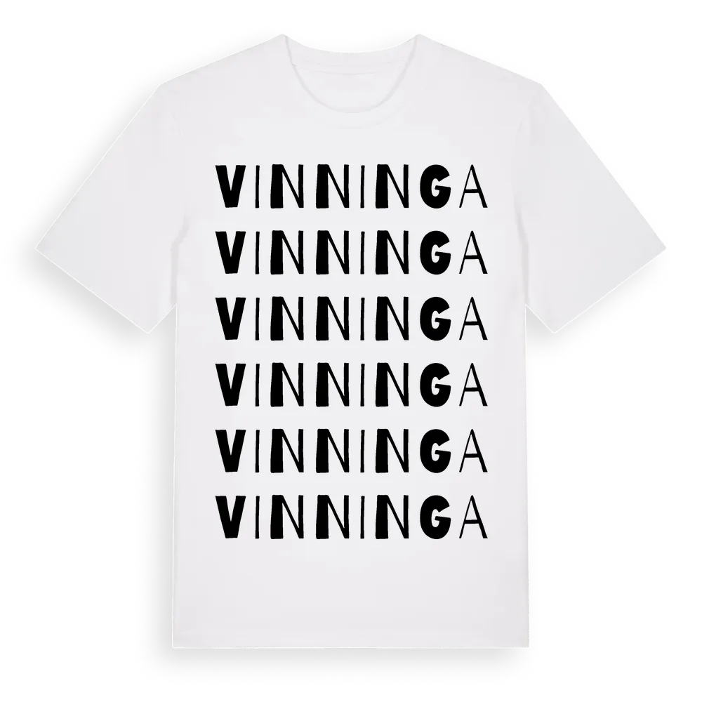 Vinninga ordlek t-shirt är inspirerad av byn Vinninga i Västra Götalands län, Sverige. Tröjan är designad för dig som har en speciell koppling till platsen – oavsett om du bor här, har rötterna här eller bara älskar Vinninga.