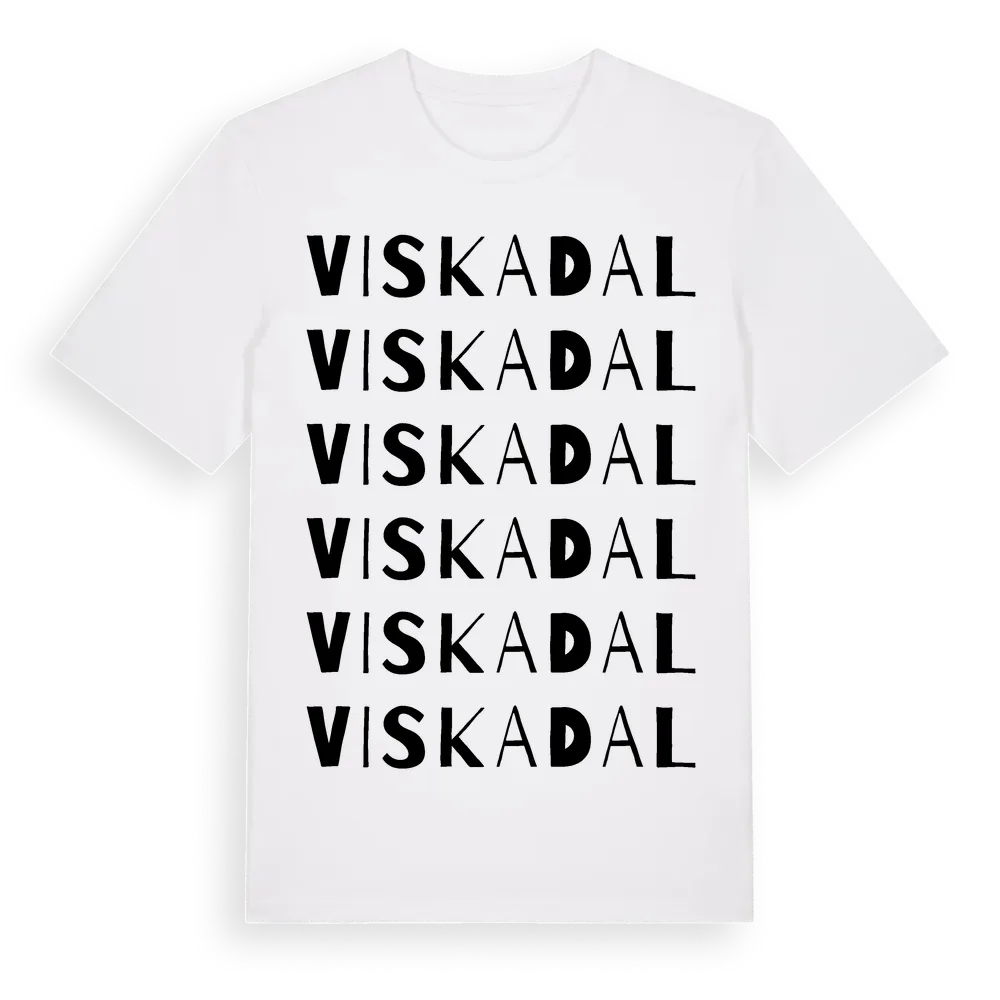 Viskadal ordlek t-shirt är inspirerad av Viskadal i Västra Götalands län, Sverige. Tröjan är designad för dig som har en speciell koppling till platsen – oavsett om du bor här, har rötterna här eller bara älskar Viskadal.