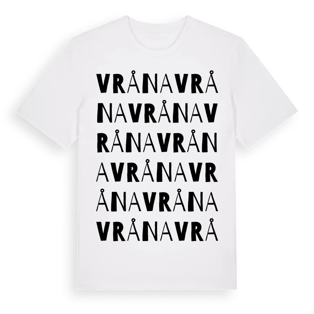 Vråna ordlek t-shirt är inspirerad av Vråna i Västra Götalands län, Sverige. Tröjan är designad för dig som har en speciell koppling till platsen – oavsett om du bor här, har rötterna här eller bara älskar Vråna.