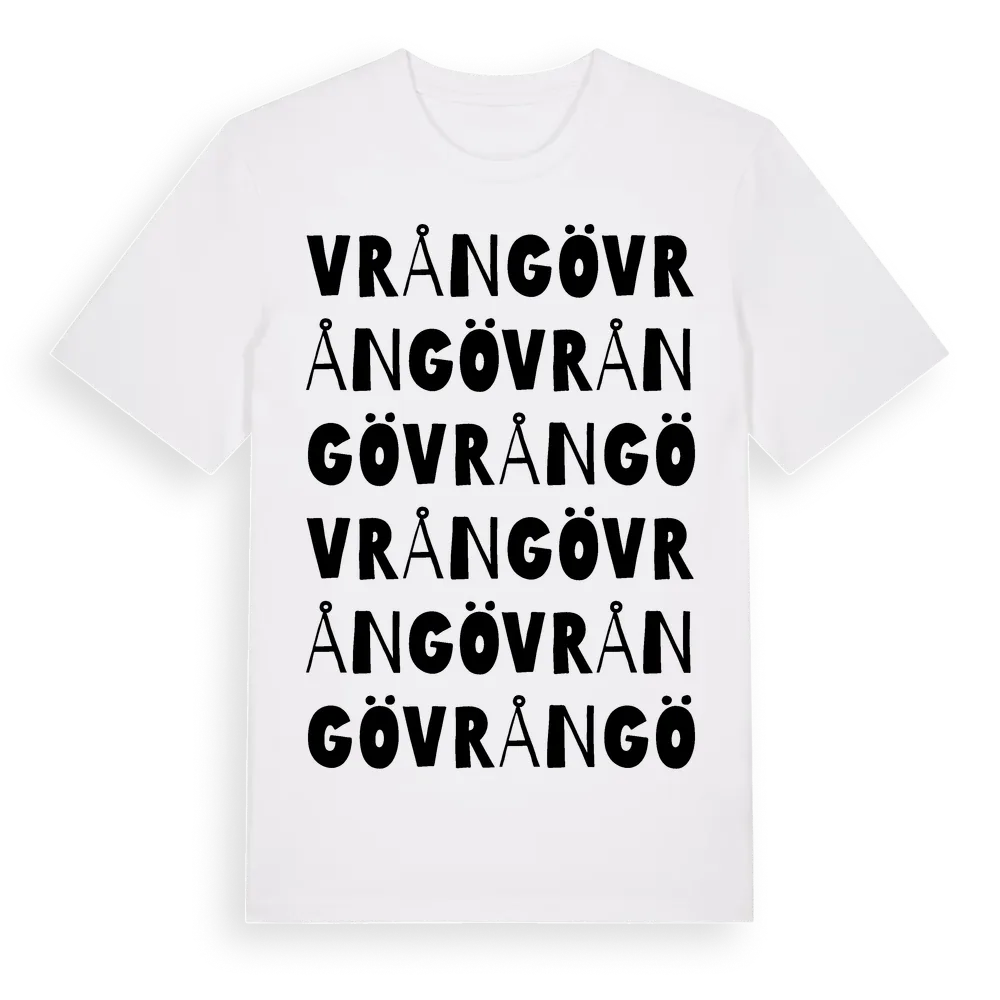 Vrångö ordlek t-shirt är inspirerad av byn Vrångö i Västra Götalands län, Sverige. Tröjan är designad för dig som har en speciell koppling till platsen – oavsett om du bor här, har rötterna här eller bara älskar Vrångö.