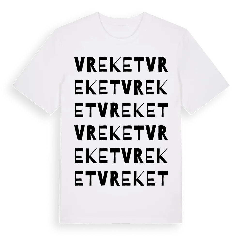 Vreket ordlek t-shirt är inspirerad av Vreket i Västra Götalands län, Sverige. Tröjan är designad för dig som har en speciell koppling till platsen – oavsett om du bor här, har rötterna här eller bara älskar Vreket.