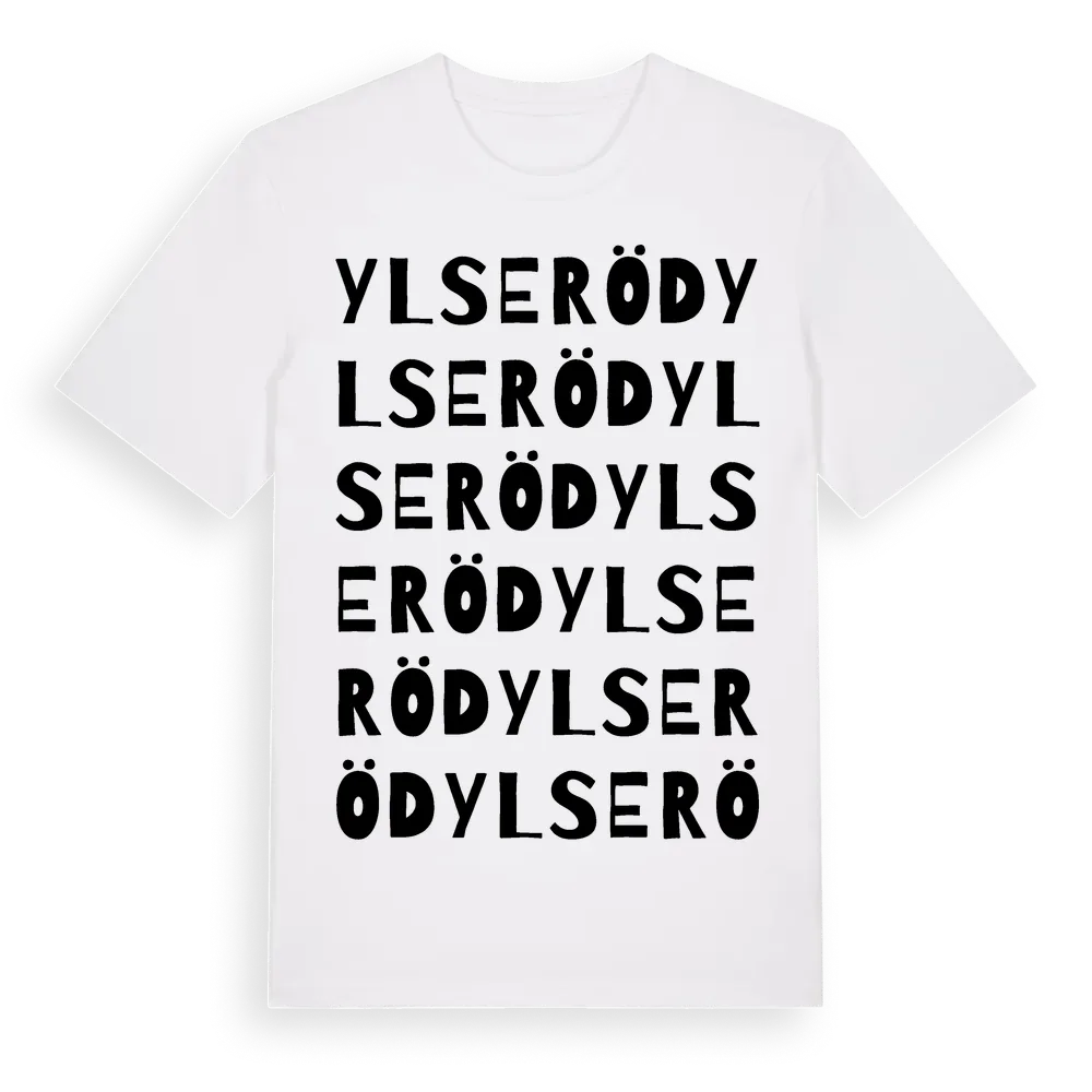 Ylseröd ordlek t-shirt är inspirerad av byn Ylseröd i Västra Götalands län, Sverige. Tröjan är designad för dig som har en speciell koppling till platsen – oavsett om du bor här, har rötterna här eller bara älskar Ylseröd.