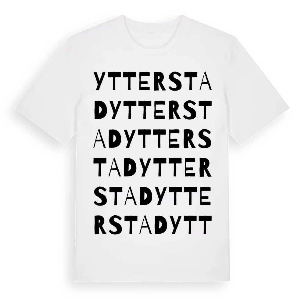 Ytterstad ordlek t-shirt är inspirerad av byn Ytterstad i Västra Götalands län, Sverige. Tröjan är designad för dig som har en speciell koppling till platsen – oavsett om du bor här, har rötterna här eller bara älskar Ytterstad.