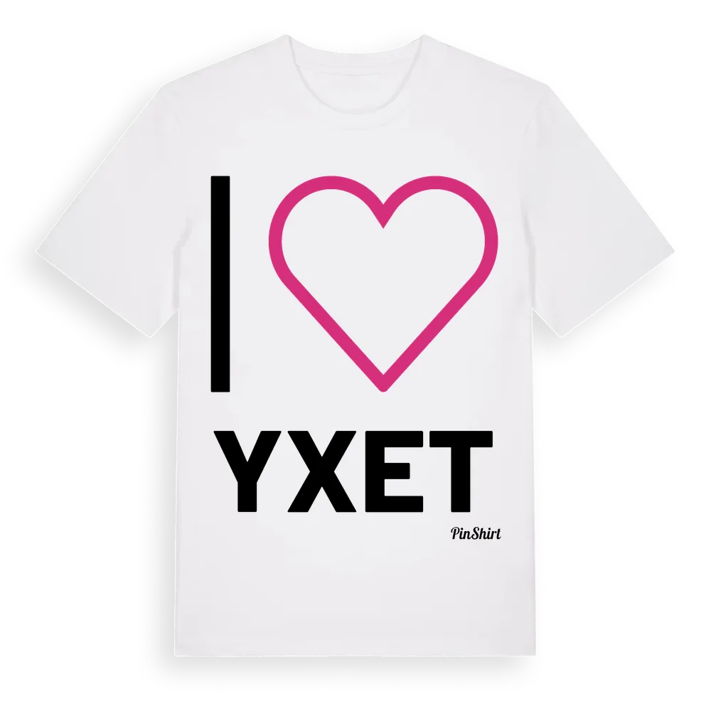 Det klassiska "I ❤ Yxet"-motivet i stort format som täcker hela bröstet. För dig som vill visa kärleken till Yxet på riktigt. Premium bomull, unisex – från Yxet i Västra Götalands län.